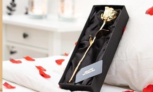Denne 24k guldbelagte rose er den ultimative gaveidé til et kobberbryllup. Rosebladene er dækket af ægte guld, hvilket gør den til en unik og værdifuld gave. Rosebækkenet er lavet af ægte blomster, så den både ser og føles ægte ud. Denne guldrose er den perfekte måde at vise din kærlighed til et kobberbryllupspar. Med sin luksuriøse udstråling vil den være en flot og værdifuld tilføjelse til ethvert hjem.