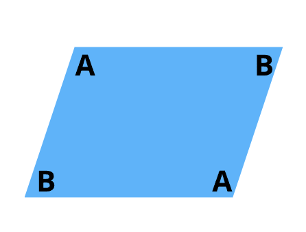 → Modsatte vinkler er lige store (vinkler A er de samme, og vinkler B er de samme)